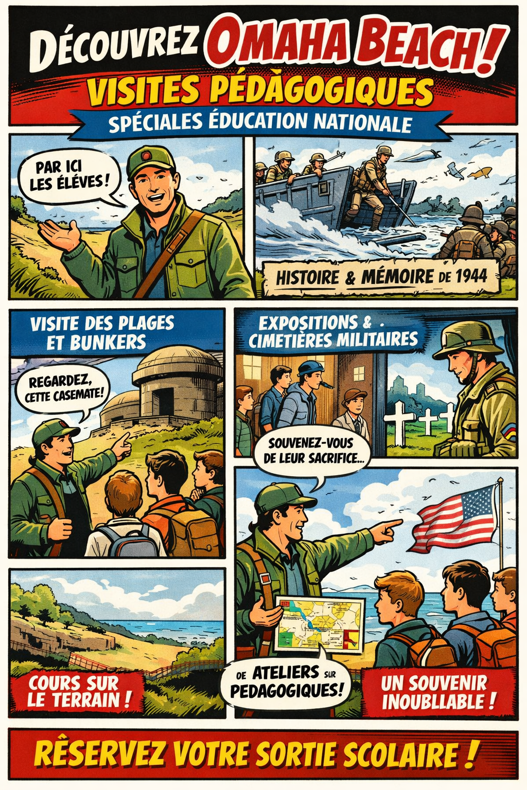 Proposez à vos élèves une immersion éducative unique à Omaha Beach, l'un des sites majeurs de la Seconde Guerre mondiale.